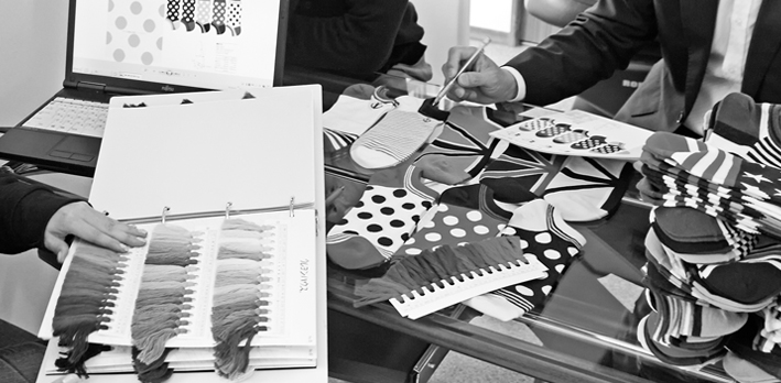 歴史ある靴下会社として培ってきたノウハウは、どのようなデザイン、素材、機能への要望にも応えられるものと自負しています。ぜひ、私たちに難題を投げかけてください。